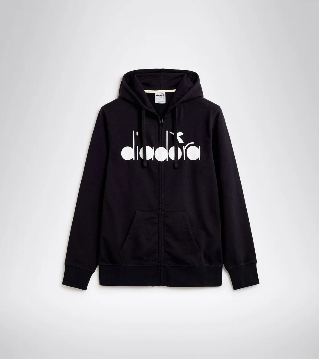 Hanorac cu glugă și fermoar complet, cu buzunar tip cangur, din bumbac și poliester. Logo Diadora pe partea din față, croială regular fit.