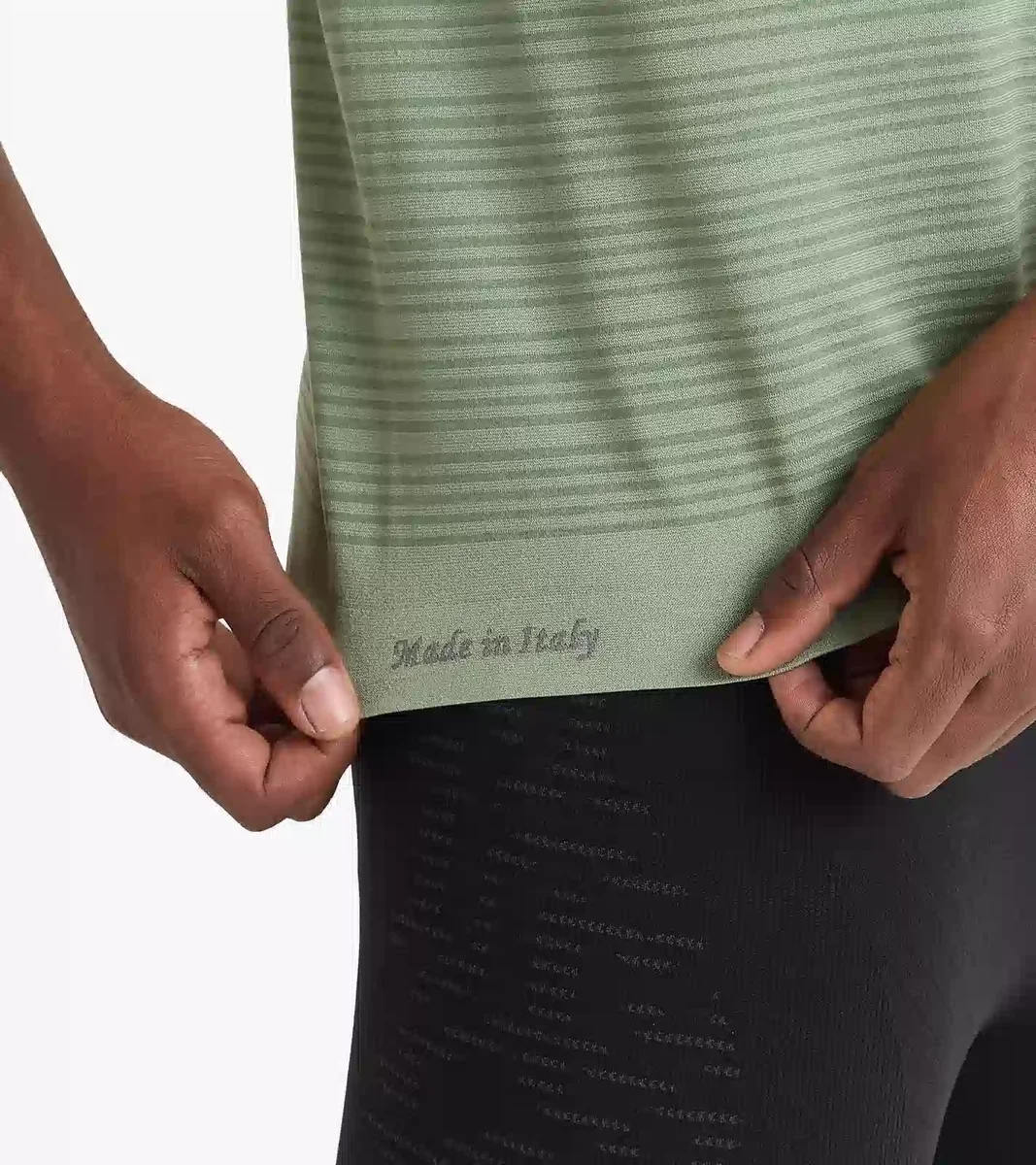 Am proiectat un articol de îmbrăcăminte tehnic pentru alergare, complet fără cusături și ultra-ușor – un strat intermediar care face totul. Fabricat în Italia, cu inovație pe care o vei simți direct pe piele.