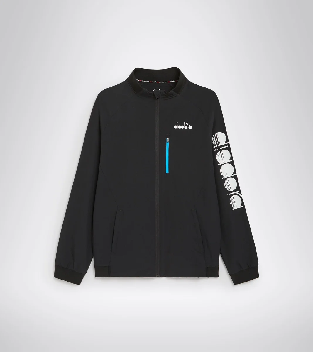 Jacheta FZ Full-zip din microfibră elastică, cu structură interioară 3D pentru a menține pielea uscată în permanență. Completată cu manșete și tiv cu nervuri fine și buzunare laterale. Logo-ul cu cinci mingi pe piept și logo-ul fregio pe spate.