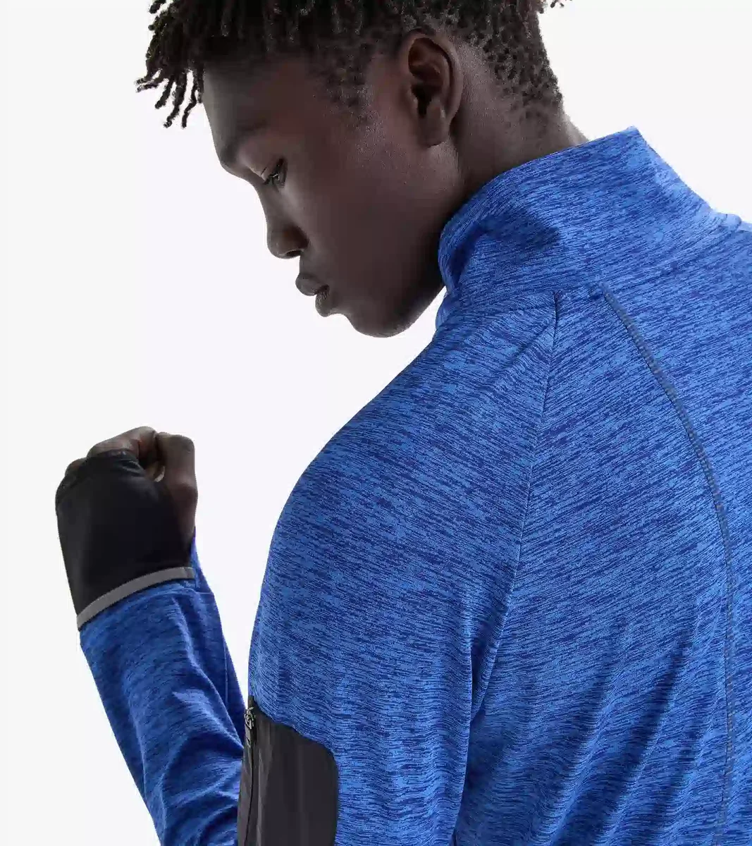 Alergătorii știu bine: ținuta potrivită este esențială atunci când alergi iarna. Acest tricou de alergare Warm Up Winter Sweat Be One pentru bărbați este confecționat din poliester cu efect melanj, cu interior periat și fermoar 1/2.