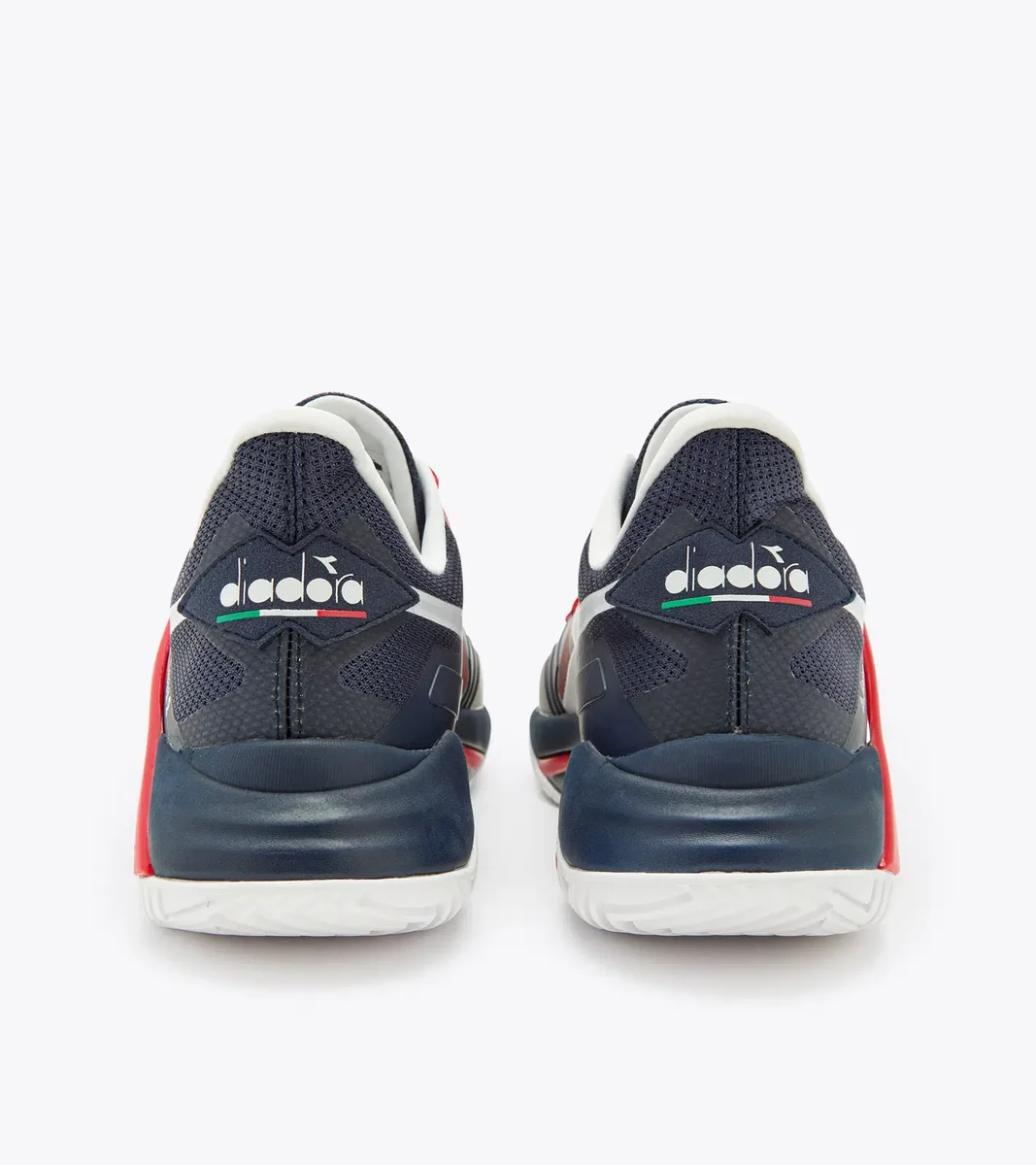 B.Icon 2 AG este un pantof de tenis pentru bărbați conceput pentru jucători de toate nivelurile, pentru utilizare pe suprafețe dure sau terenuri de zgură. Partea superioară este realizată din SuprellTech, plasă aerată și d-skin, plus cârlig exterior pentru o stabilitate excelentă. Branț anatomic din EVA rezistent la șocuri; talpă intermediară dd anima C.C.B. Talpă exterioară din cauciuc, cu compus Duratech 5000 rezistent la uzură. Utilizare: