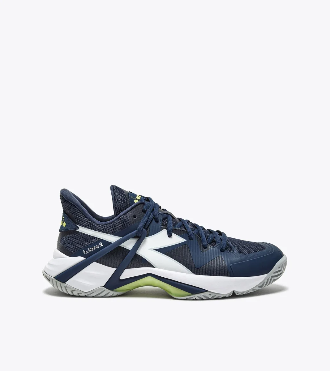 B.Icon 2 AG este un pantof de tenis pentru bărbați conceput pentru jucători de toate nivelurile, pentru utilizare pe suprafețe dure sau terenuri de zgură. Partea superioară este realizată din SuprellTech, plasă aerată și d-skin, plus cârlig exterior pentru o stabilitate excelentă. Branț anatomic din EVA rezistent la șocuri; talpă intermediară dd anima C.C.B. Talpă exterioară din cauciuc, cu compus Duratech 5000 rezistent la uzură. Utilizare: