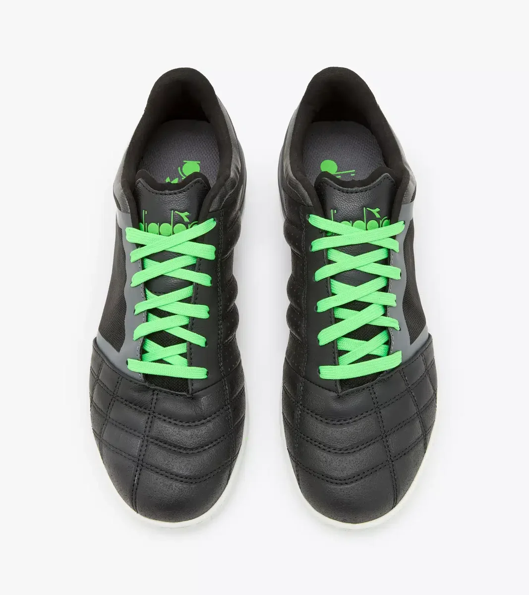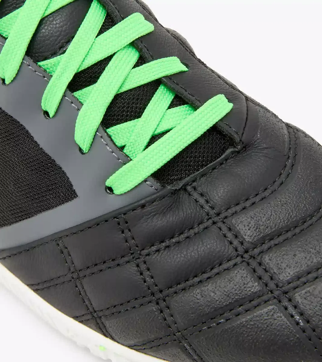 Brasil Sala ID este gheata de futsal pentru bărbați cu un design asimetric, care combină un interior din piele ultra-moale cu un exterior din plasă respirabilă, garantând respirabilitate și ușurință în timpul jocului. Film special din cauciuc pe vârful pantofului, cu efect de aderență rezistent la uzură, talpă din cauciuc rezistentă la zgârieturi și formă „ergo-stop” pe partea din spate a tălpii, pentru a facilita oprirea mingii. Model potrivit pentru terenuri de interior și parchet.