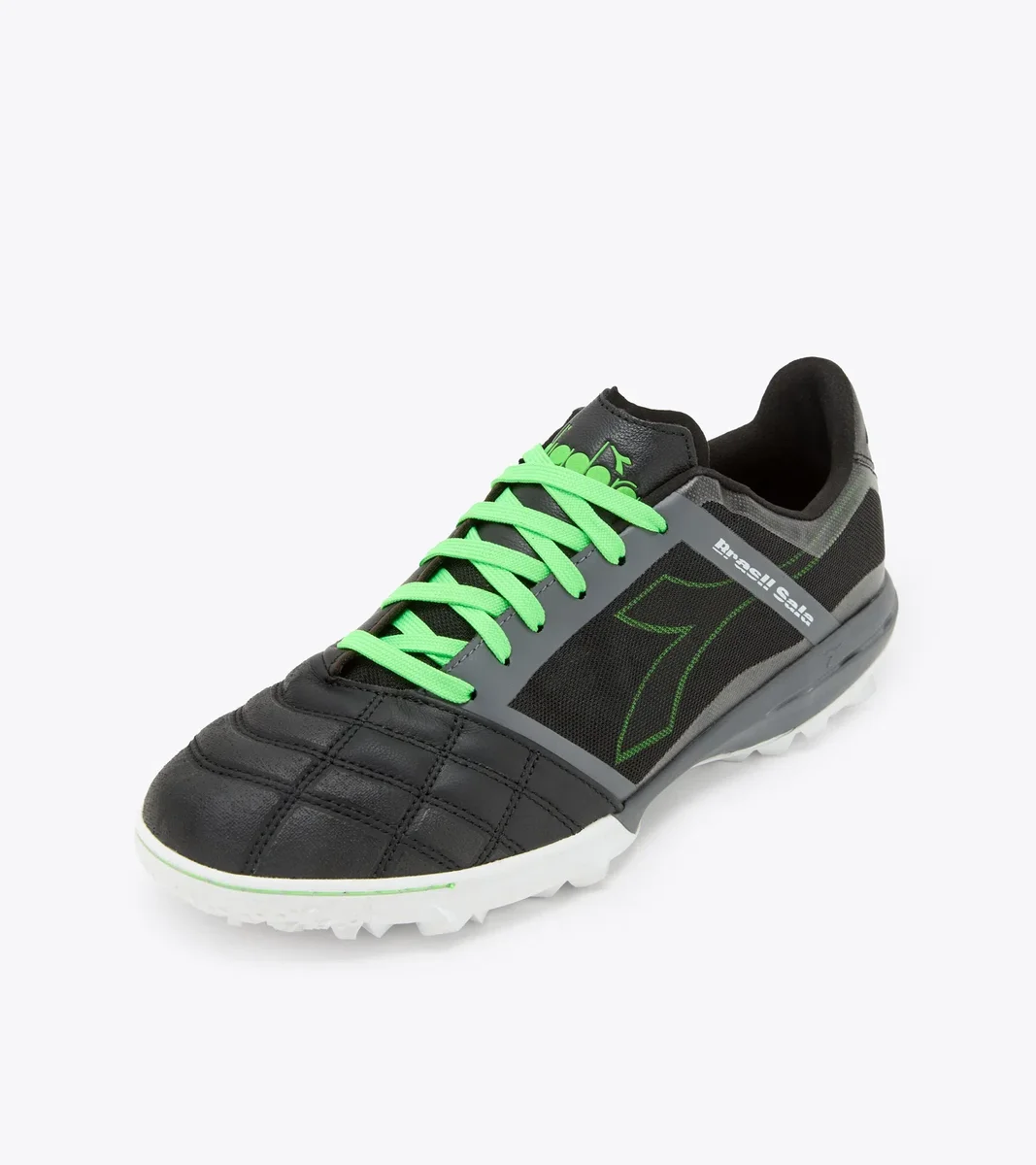 Brasil Sala TF este gheata de futsal pentru bărbați cu un design asimetric, care combină un interior din piele ultra-moale cu un exterior din plasă respirabilă, garantând respirabilitate și ușurință în timpul jocului. Film special din cauciuc pe vârful piciorului, cu efect de aderență rezistent la uzură, talpă din cauciuc rezistentă la zgârieturi și formă „ergo-stop” pe partea din spate a tălpii, pentru a facilita oprirea mingii. Stil potrivit pentru terenuri sintetice.