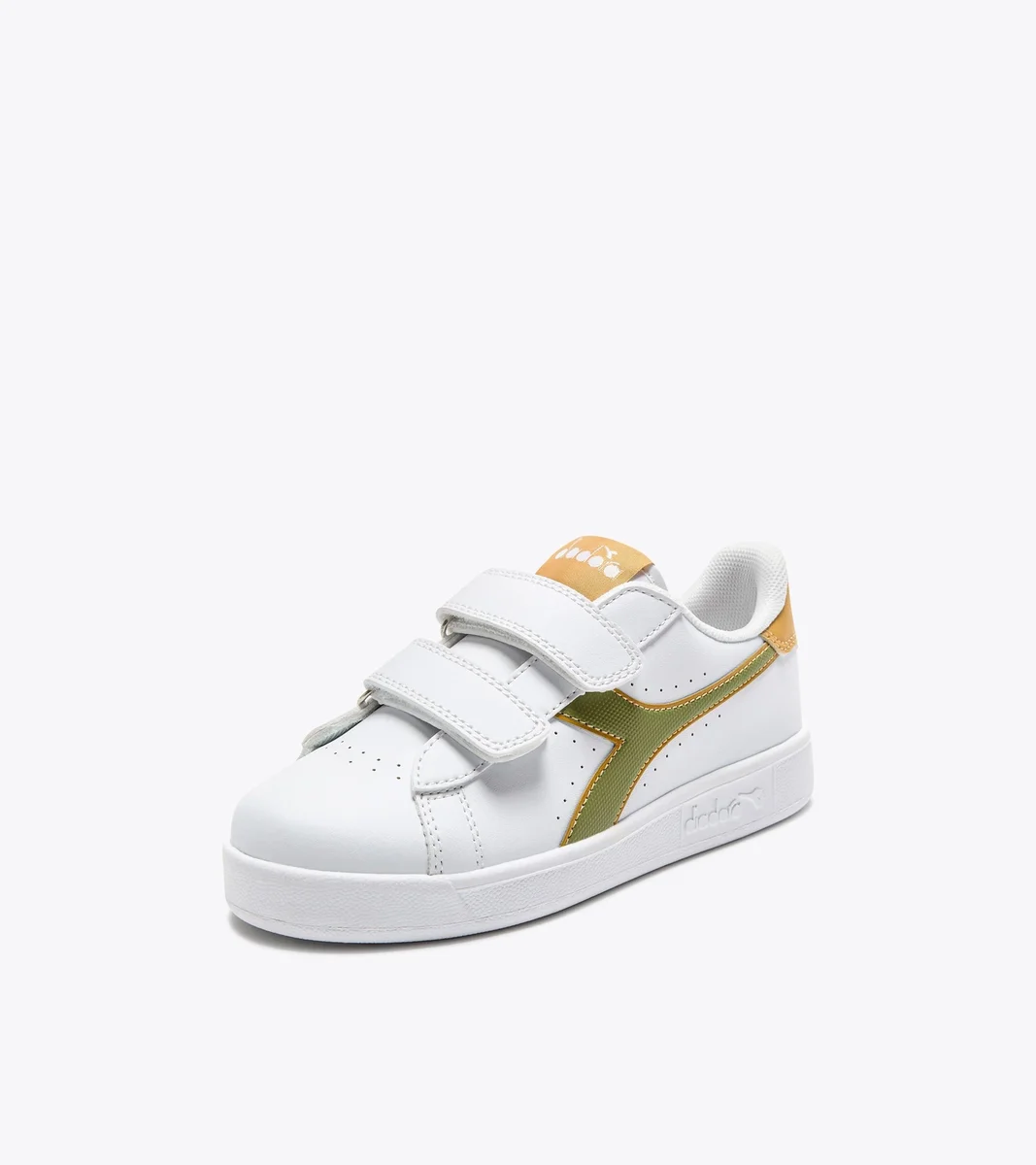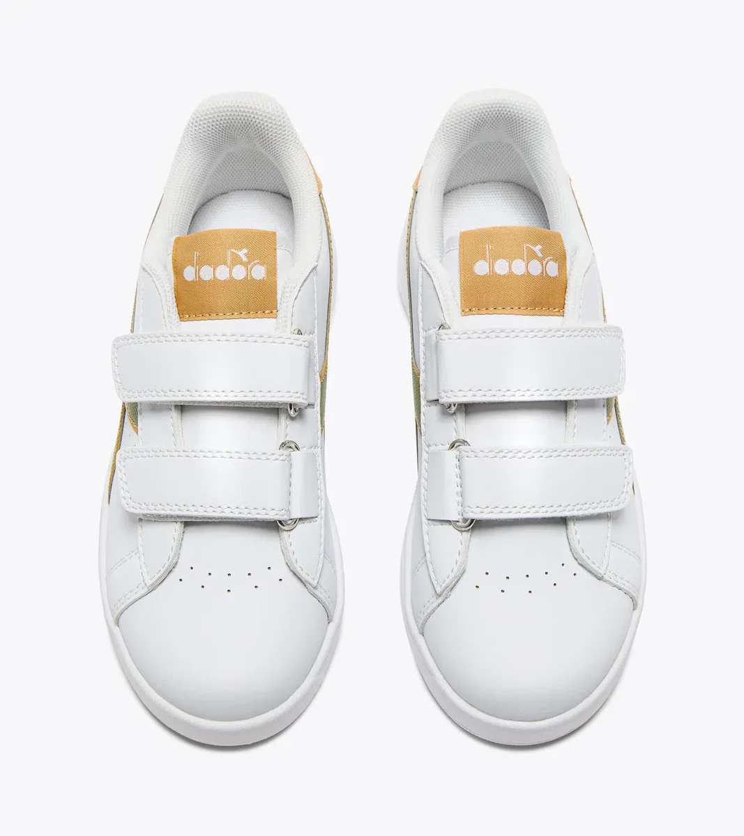 Adidași pentru copii, unisex, cu talpă joasă, detalii ajurate, închidere practică cu velcro, fregio, limbă și spate asortate.