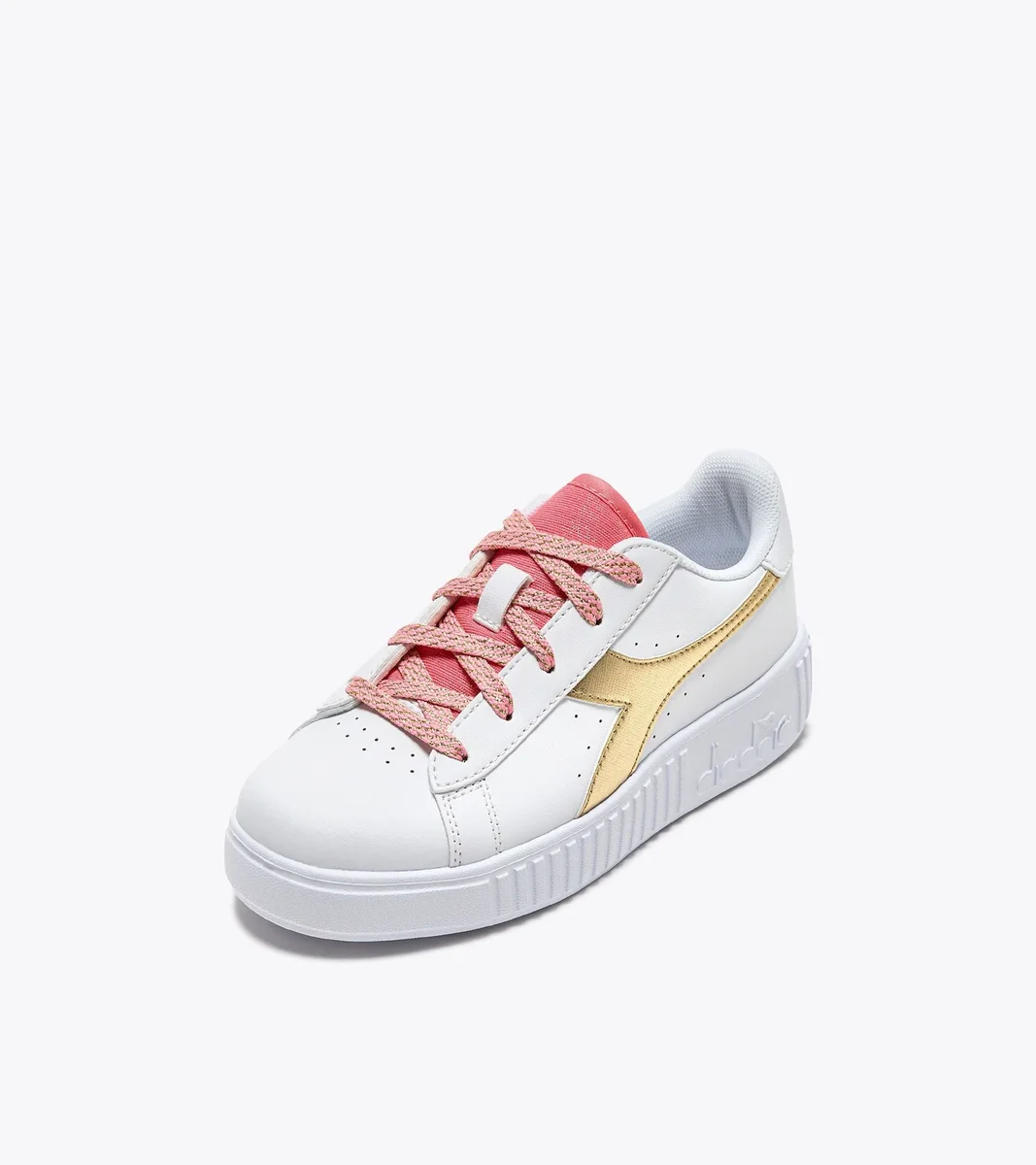 Cu Game Step, poți păși cu încredere. Modelul Glitch, conceput pentru fete cu vârsta între 4 și 8 ani, scoate în evidență caracterul ascuns al adidașilor albi clasici. Șireturile, limba și logo-ul din spate asortate adaugă o notă de rafinament, în timp ce talpa cu platformă și logo-ul metalic îți pun în valoare latura îndrăzneață.