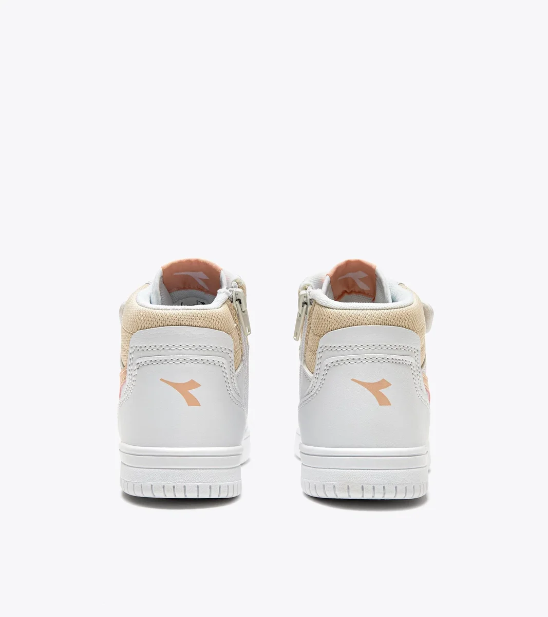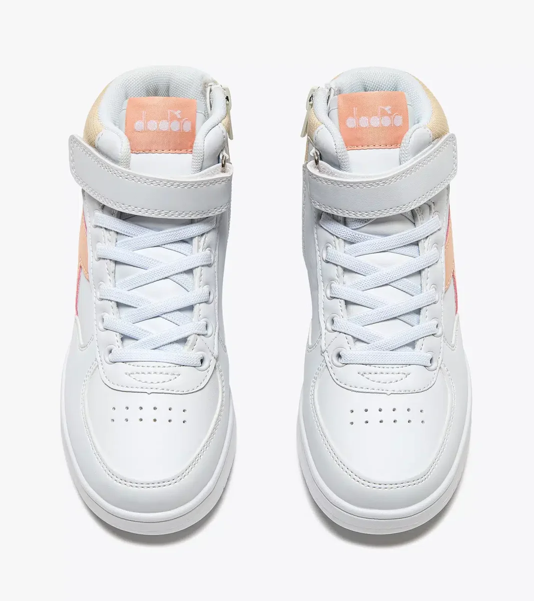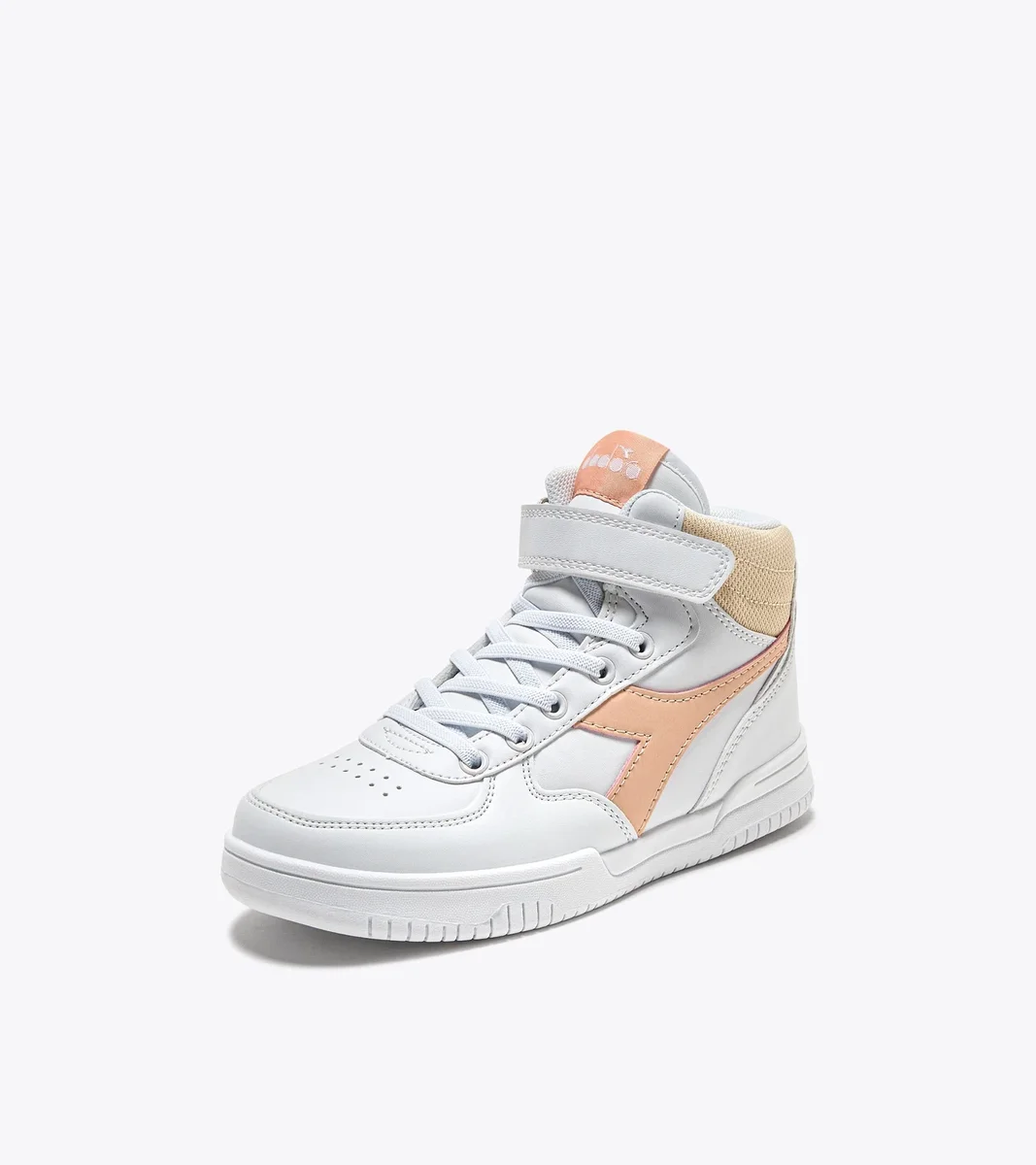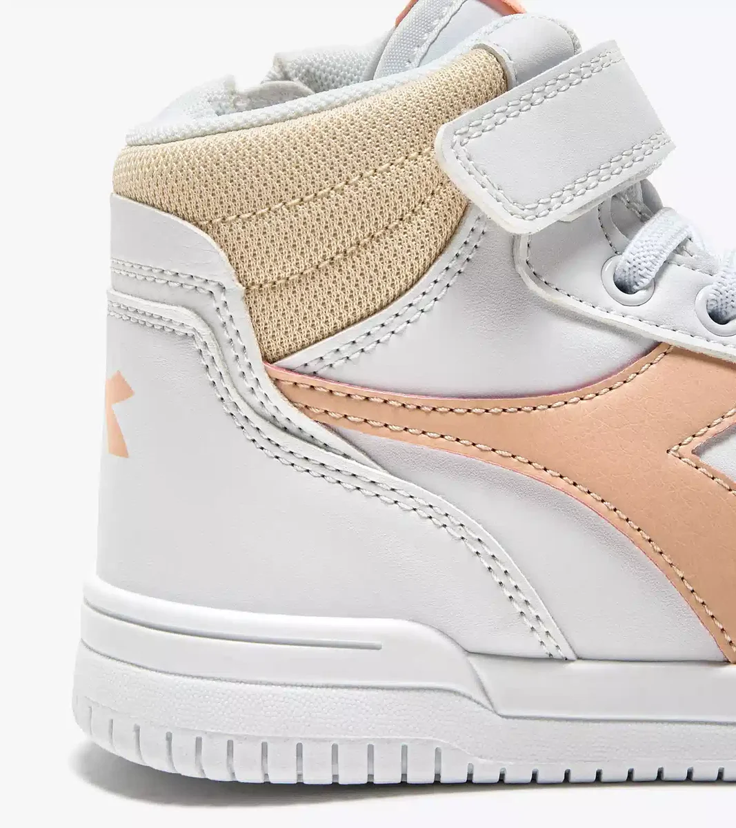Adidași pentru copii din piele sintetică, cu închidere cu fermoar. Modelul Raptor MID PS are gulerul din material texturat și fregio contrastant, la fel ca versiunea pentru adulți.