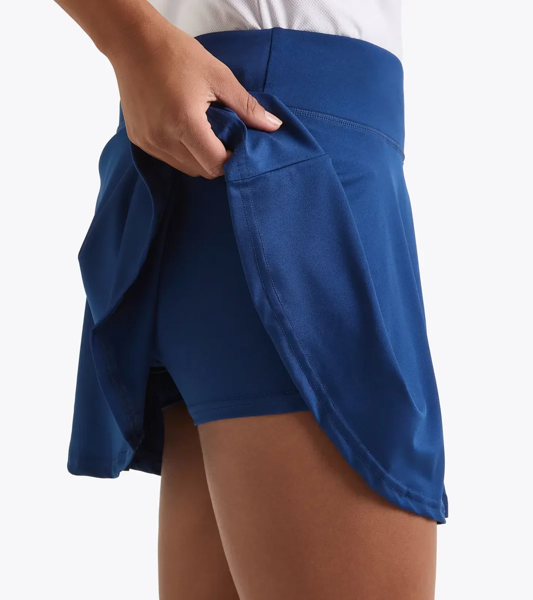 Fustă evazată din jersey de poliester moale și elastic, cu talie înaltă și buzunar interior practic. Adaugă un plus de stil antrenamentelor tale.