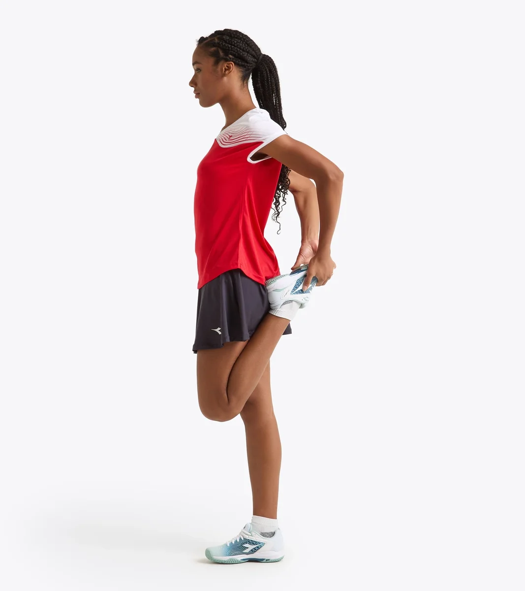 Fustă evazată din jersey de poliester moale și elastic, cu talie înaltă și buzunar interior practic. Adaugă un plus de stil antrenamentelor tale.