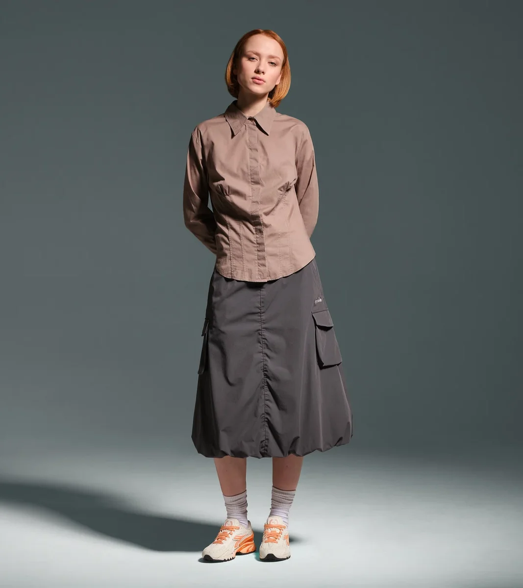 Disponibilă exclusiv pe site-ul nostru de comerț electronic și în magazinul Diadora din Cortina, această fustă cargo oferă un look feminin practic și cald. În zilele cele mai reci din oraș sau în timpul relaxării après-ski, poartă o piesă sport hibridă cu buzunare și șnururi reglabile pentru a te bucura de același confort ca un trening.