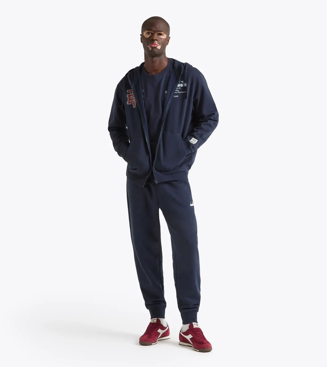 Un hanorac cald și funcțional, creat pentru recuperarea după alergare și pentru uzul zilnic. Confecționat din bumbac periat (80%) cu tiv ajustabil pentru o potrivire personalizată. Fermoar complet, glugă spațioasă și un logo îndrăzneț în stil colegial pe piept – energia clasică a alergării, stilizată după gustul tău.