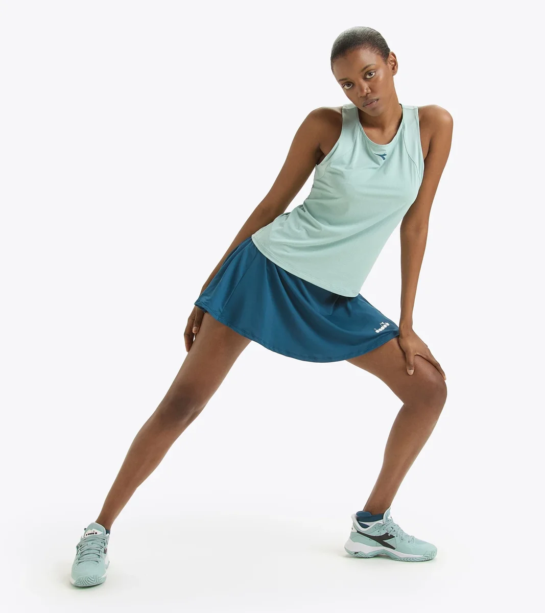 Bucurați-vă de stilul dvs. pe teren fără a face compromisuri în ceea ce privește confortul. Fusta L. Skirt Icon este alegerea ideală pentru meciurile elegante, fiind confecționată din jersey elastic și neted în față și cu pliuri în spate. Datorită tehnologiei Coolcore care reglează temperatura corpului, puteți depozita mingile în buzunarele pantalonilor scurți, disponibile pe ambele părți.