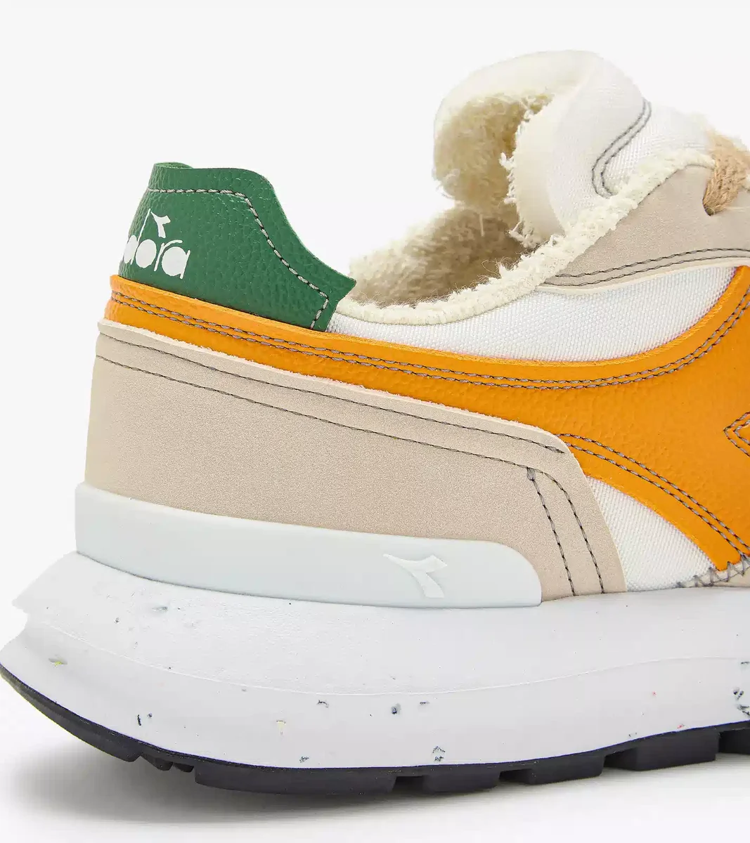 Colaborarea ACBC x diadora prezintă un redesign al modelului retro-running Kmaro, realizat cu materiale ecologice certificate. Partea superioară este realizată din FreeBioTM, o piele alternativă ACBC; căptușeala este din bumbac organic; talpa este parțial realizată din ReRubber, iar șireturile sunt din fibre de iută.