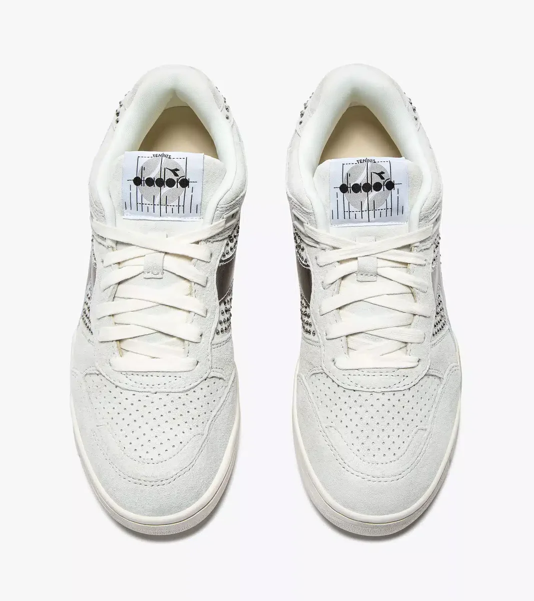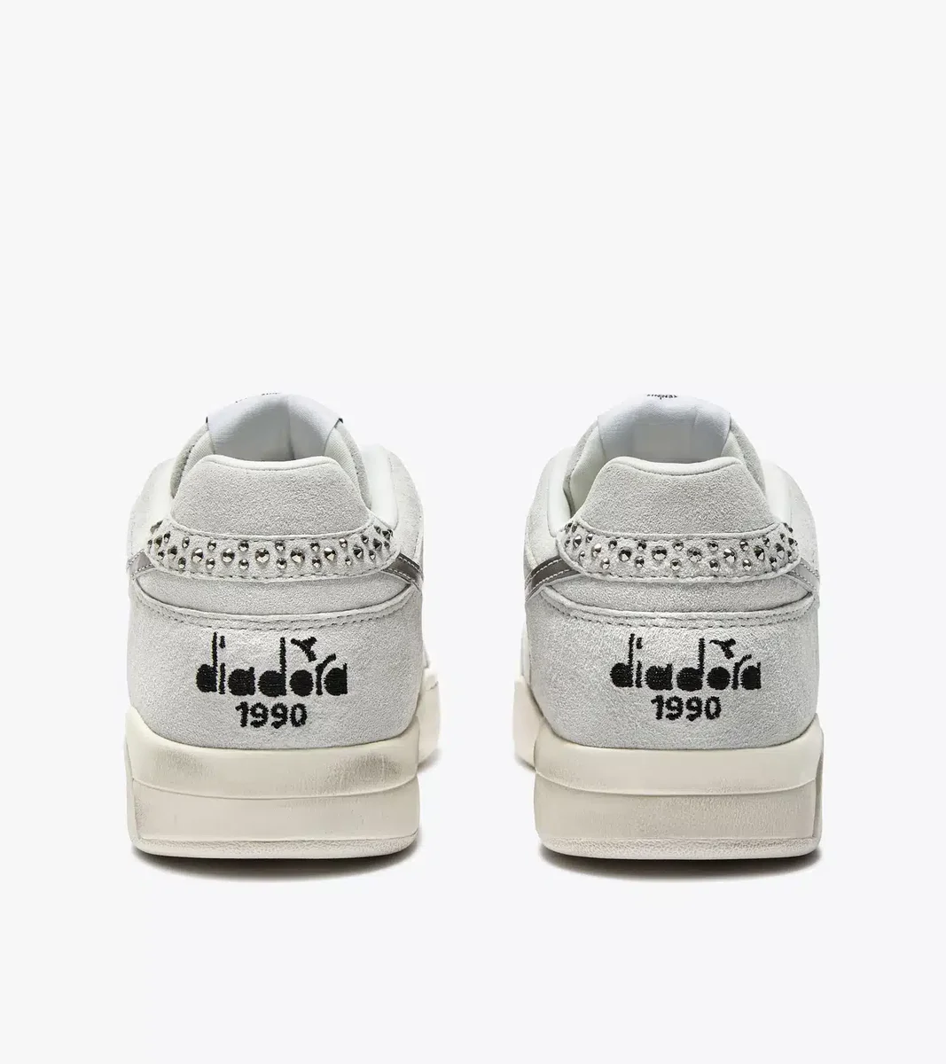 B.560 Studs Used WN este regina contrastelor. Pe de o parte, întruchipează un design iconic cu tratament cu ceară care amintește de o altă epocă. Pe de altă parte, ținte îndrăznețe se întind de-a lungul panoului lateral și a limbii din spate, evidențiind logo-ul Diadora din piele metalică. Ar putea fi aceasta noua eră a stilului tenis?