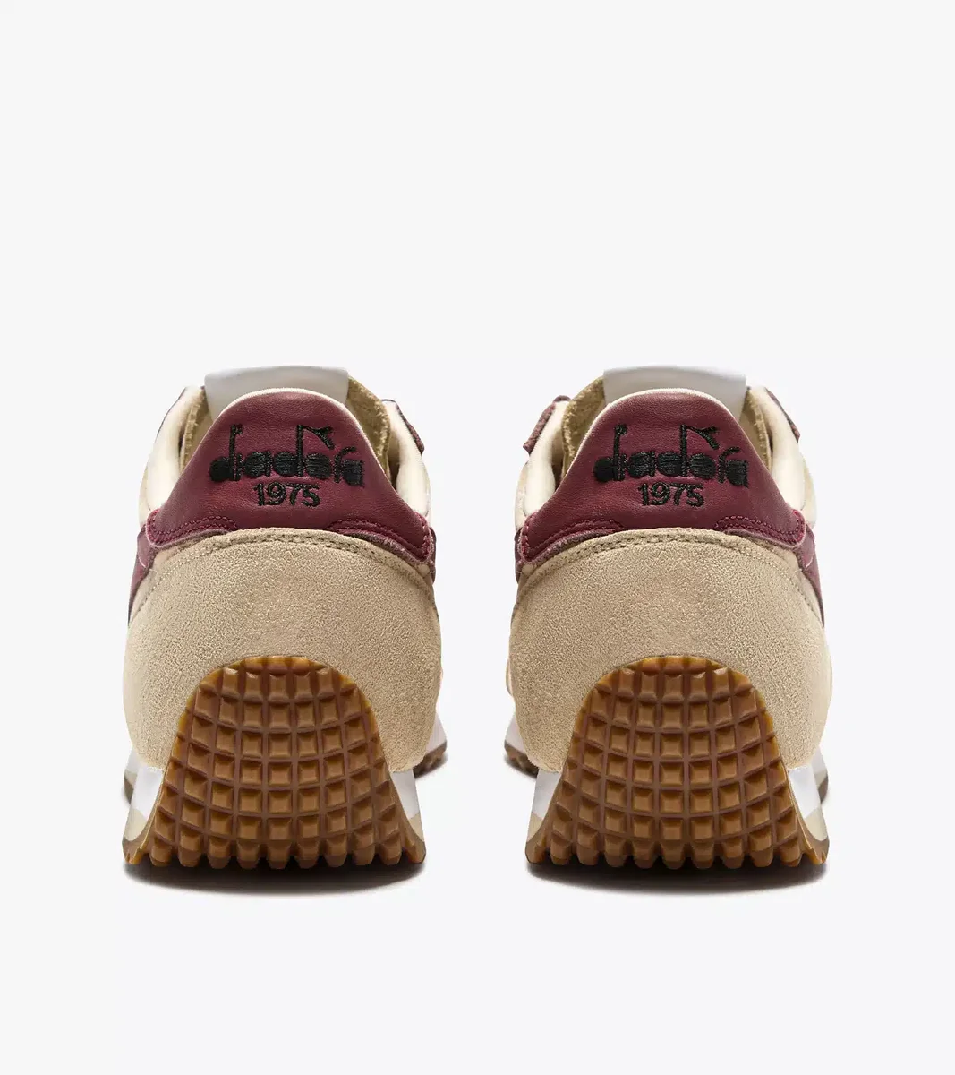 Model de alergare în stilul anilor ’70, direct din arhivele Diadora 1975. Detaliile iconice, precum ochiurile metalice, sunt fidele primului pantof sport Diadora.