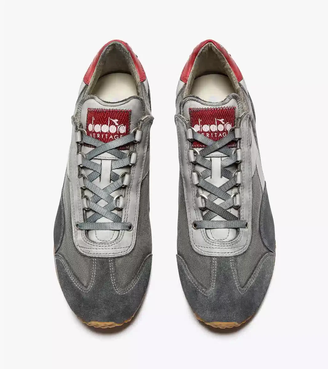 Acest sneaker Heritage se reinventează încă o dată. Equipe H Dirty Stone Wash EVO prezintă o combinație de pânză și piele de căprioară cu limbă din piele, având un finisaj distinctiv stone wash. Aspectul uzat îi conferă un farmec atemporal, care amintește de nostalgia anilor ’80. Arhiva 1975 Model de alergare în stilul anilor ’70, direct din arhivele Diadora 1975. Detaliile iconice, precum ochiurile metalice, sunt fidele primului model de pantofi sport Diadora. Materiale de calitate superioară. Confecționați din pânză și piele întoarsă, cu limbă din piele. Spălare cu pietre. Detaliu tipic al pantofilor sport Diadora Heritage, tratamentul de spălare cu pietre înmoaie pielea. Efect murdar.