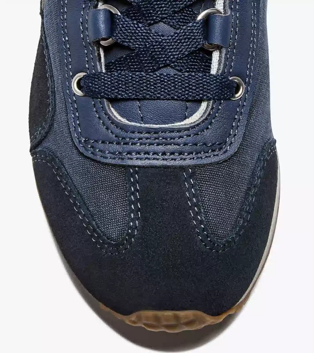 Model de alergare în stilul anilor ’70, direct din arhivele Diadora 1975. Detaliile iconice, precum ochiurile metalice, sunt fidele primului pantof sport Diadora