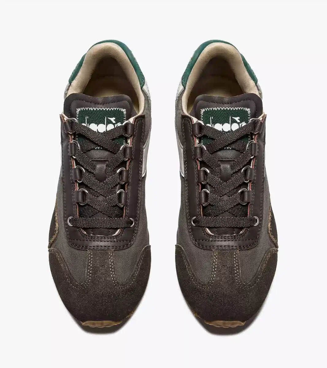 Confecționați din piele de căprioară și finisați cu tratamentele caracteristice Diadora de spălare cu pietre și murdărire, aceștia au un aspect perfect uzat, ca o descoperire rară scoasă direct din arhivele anilor ’80.