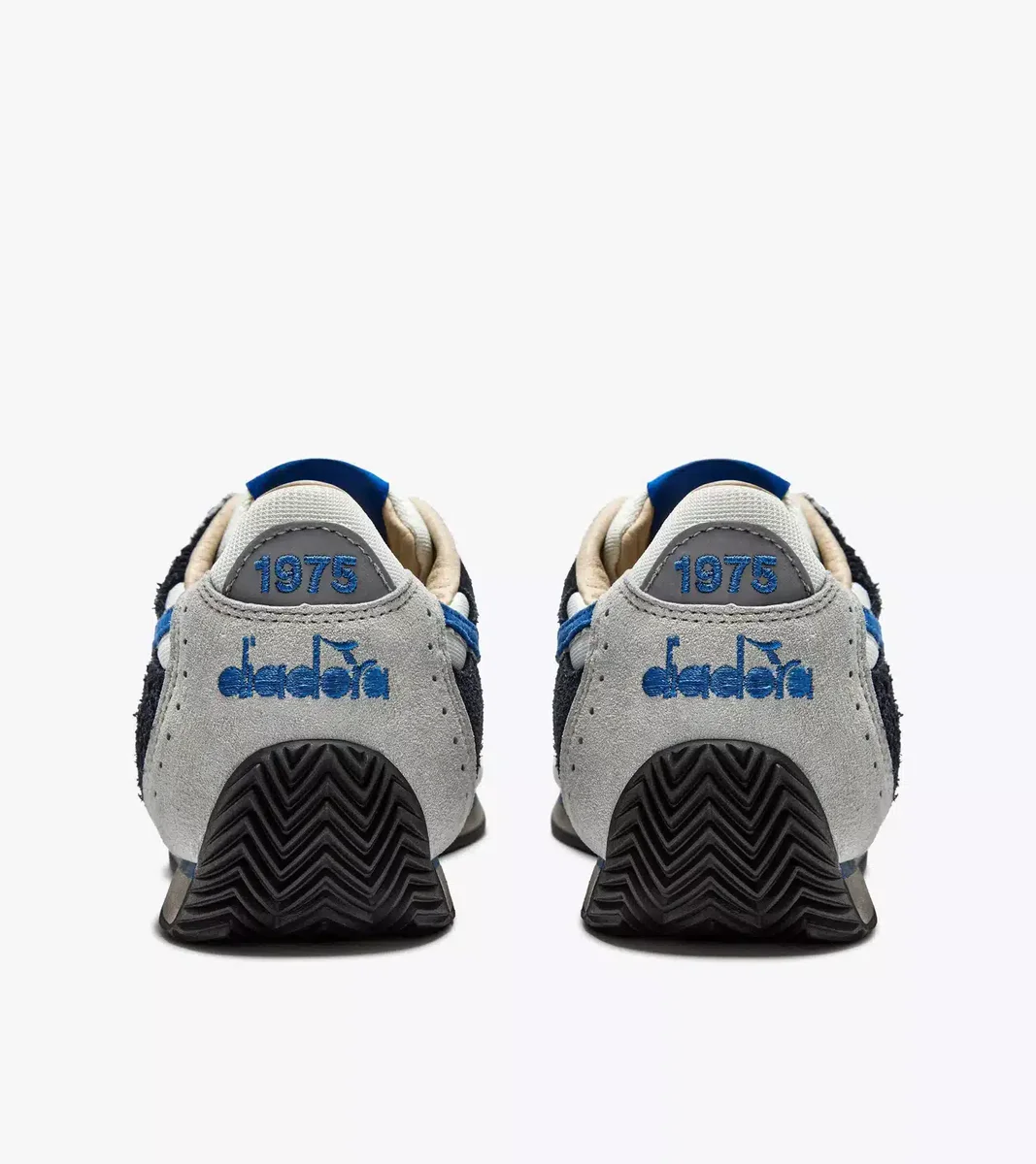 Model de alergare în stilul anilor ’70, direct din arhivele Diadora 1975. Detaliile iconice, precum ochiurile metalice, sunt fidele primului pantof sport Diadora.