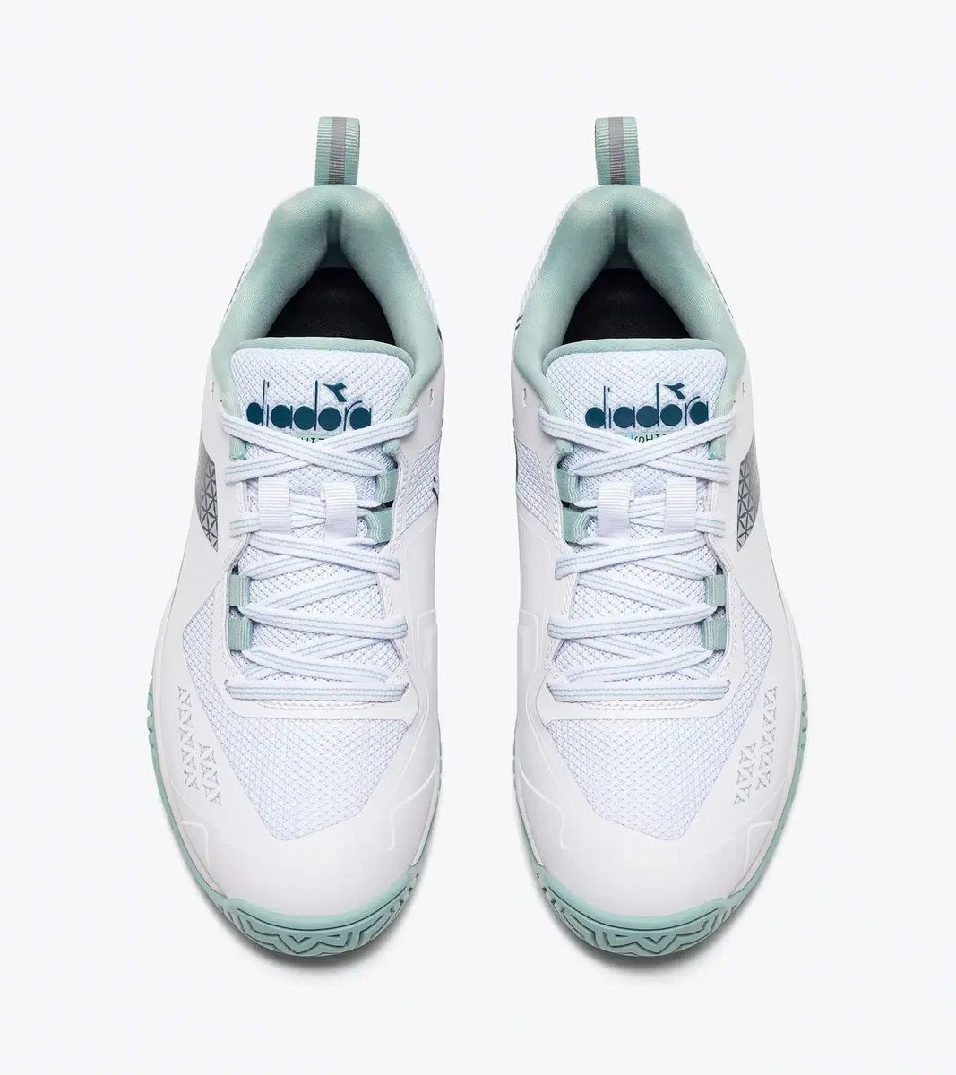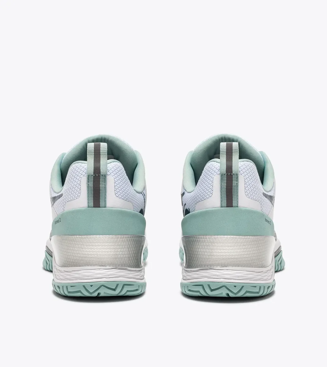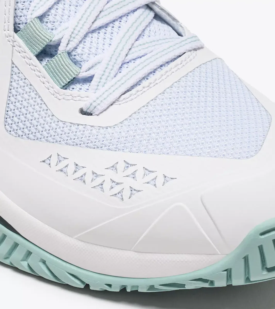 Blushield Torneo 2 W AG este un model de pantofi de tenis pentru femei, conceput pentru jucătoare de toate nivelurile, pentru utilizare pe suprafețe dure sau terenuri de zgură. Partea superioară este realizată din SuprellTech, plasă aerată și d-skin, pentru stabilitate, respirabilitate și confort excelente, căptușeală moale din lycra cu design antiderapant. Branț detașabil, dnattivo; talpă intermediară din EVA ușor și întăritură pentru arcada plantară, pentru a îmbunătăți stabilitatea; tehnologie Blushield la nivelul metatarsianului. Talpă exterioară din cauciuc cu compus special Duratech 5000 rezistent la uzură. Utilizare: