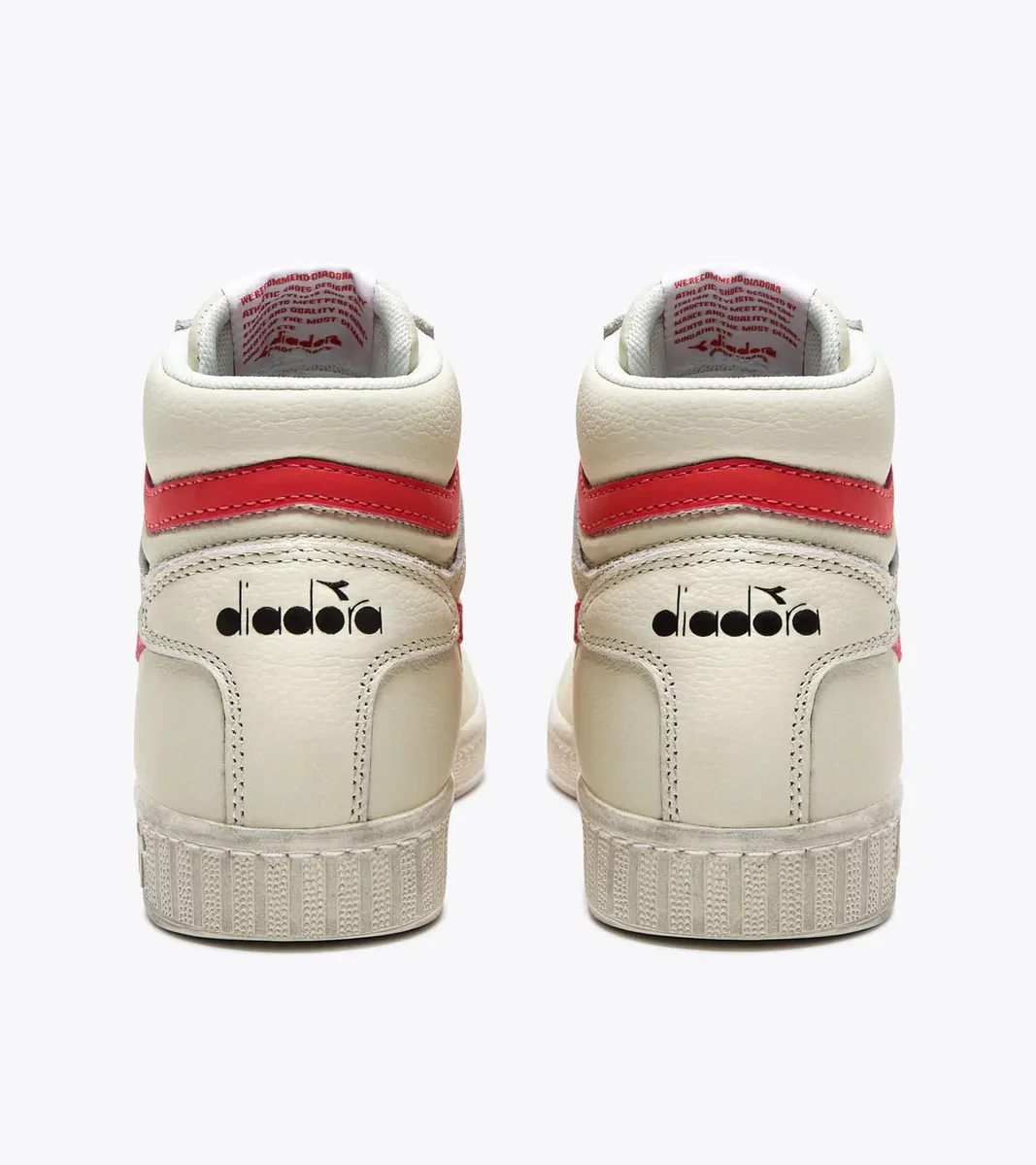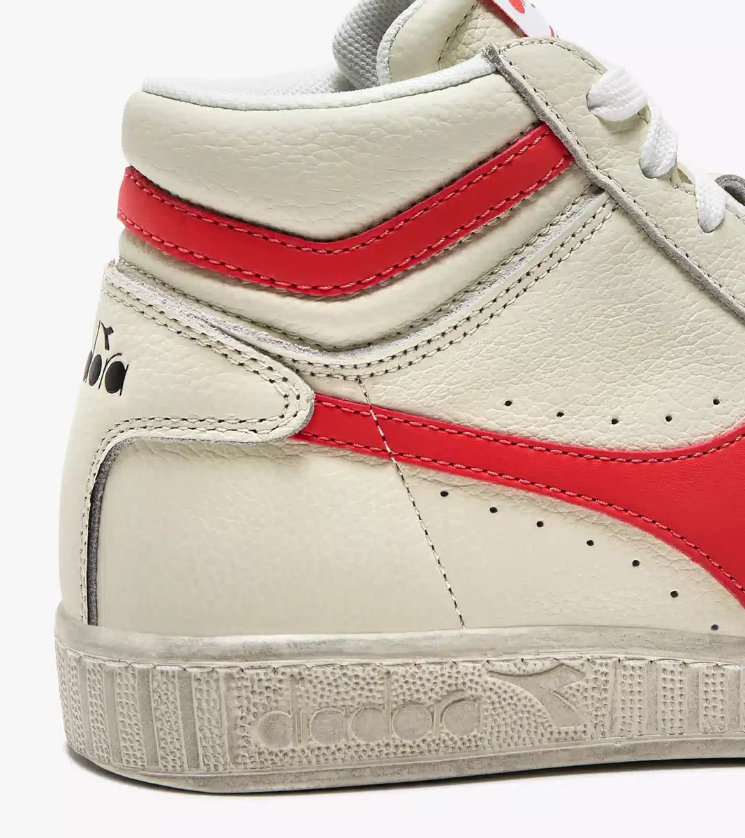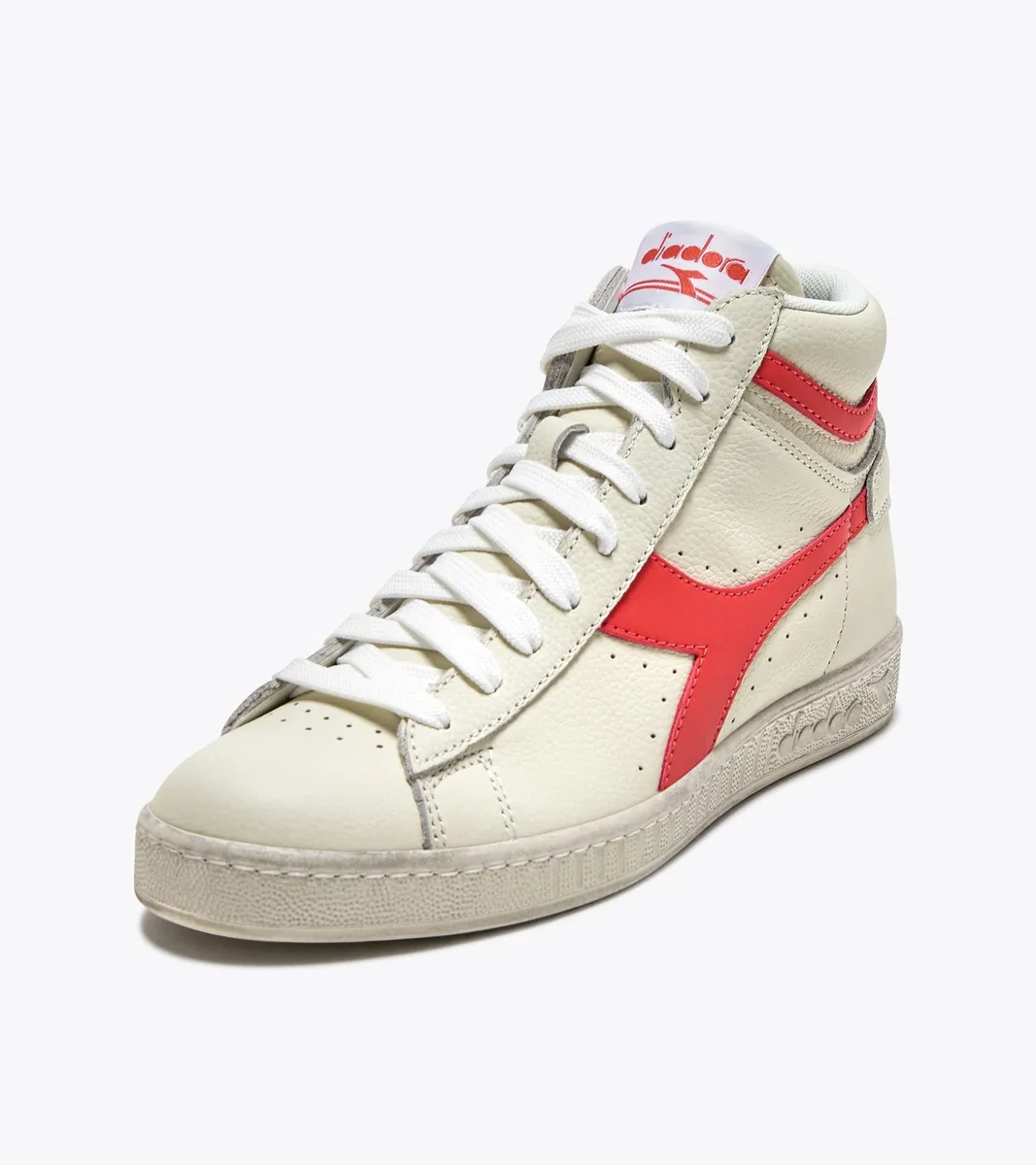 Vintage, te rog! Game L High Fluo Waxed este confecționat din piele naturală tăbăcită. Acest proces slăbește fibrele și scoate în evidență textura naturală a pielii, conferind sneakerului un aspect uzat. Vei iubi la fel de mult și textura!