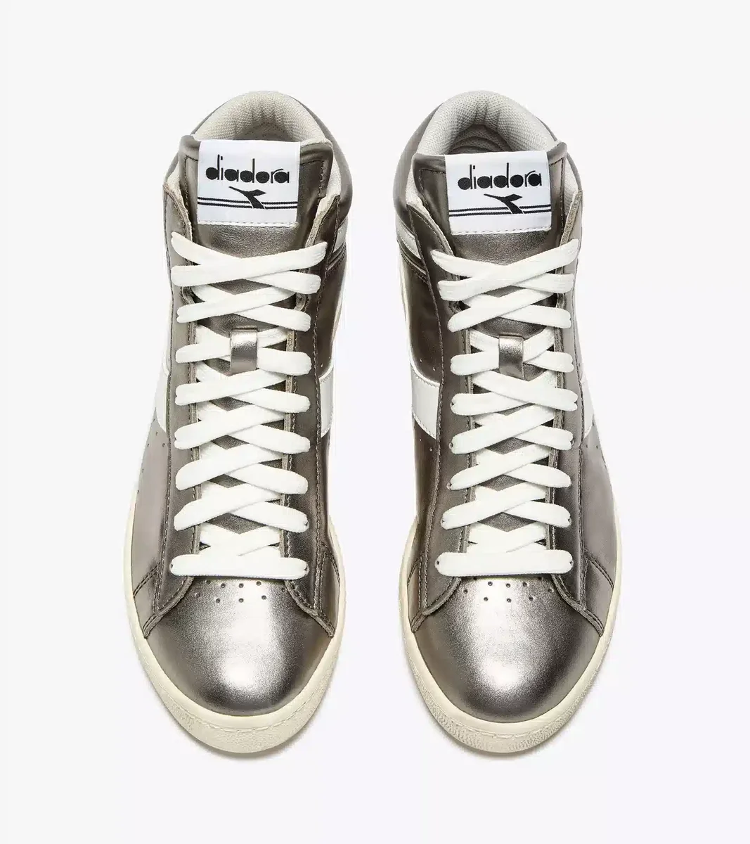 Pășește în perfecțiunea retro. Game L High Metallic WN transmite vibrațiile sportive ale anilor ’80, inspirându-se din arhivele de tenis ale Diadora. Confecționați în întregime din piele metalică premium.
