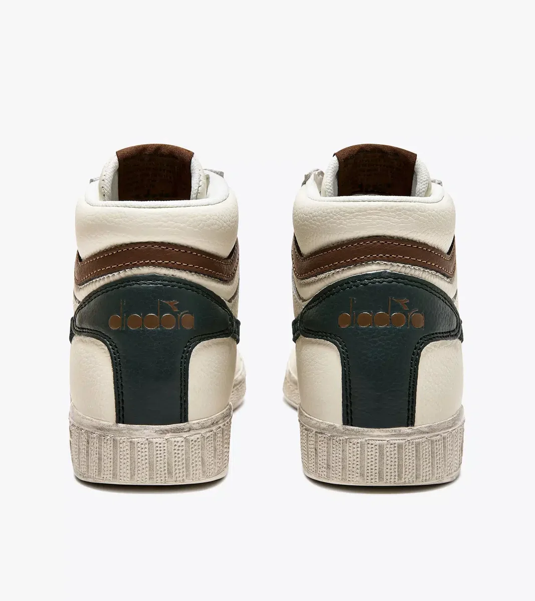 Modelul Game își datorează popularitatea esteticii sale retro, inspirată de pantofii clasici de tenis Diadora. Confecționați din piele albă, finisajul final cu ceară creează un efect distinctiv de uzură care sporește atractivitatea pielii. Detaliile sunt realizate din piele întoarsă, adăugând dinamism pantofilor și confirmând stilul lor iconic. Iar dacă preferi adidașii cu talpă joasă, descoperă modelul Game în varianta sa low-cut!