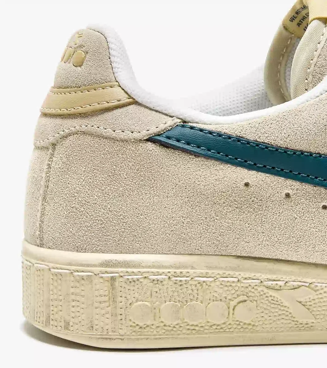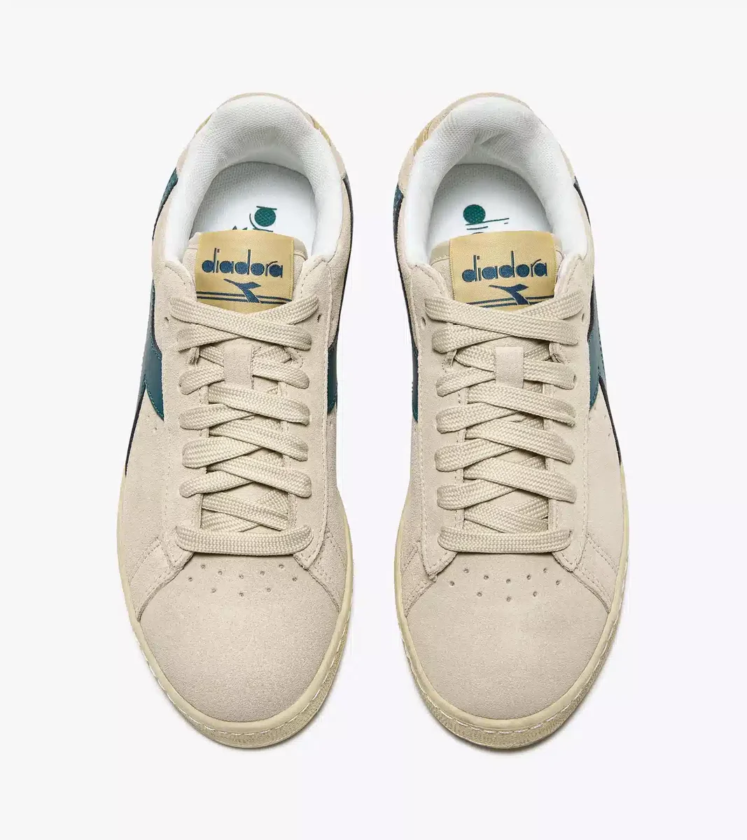 Modelul Game își datorează popularitatea esteticii sale retro, inspirată de pantofii clasici de tenis Diadora. Confecționați din piele albă, finisajul final cu ceară creează un efect distinctiv de uzură care sporește atractivitatea pielii. Detaliile sunt realizate din piele întoarsă, conferind dinamism pantofilor și confirmând stilul lor iconic.