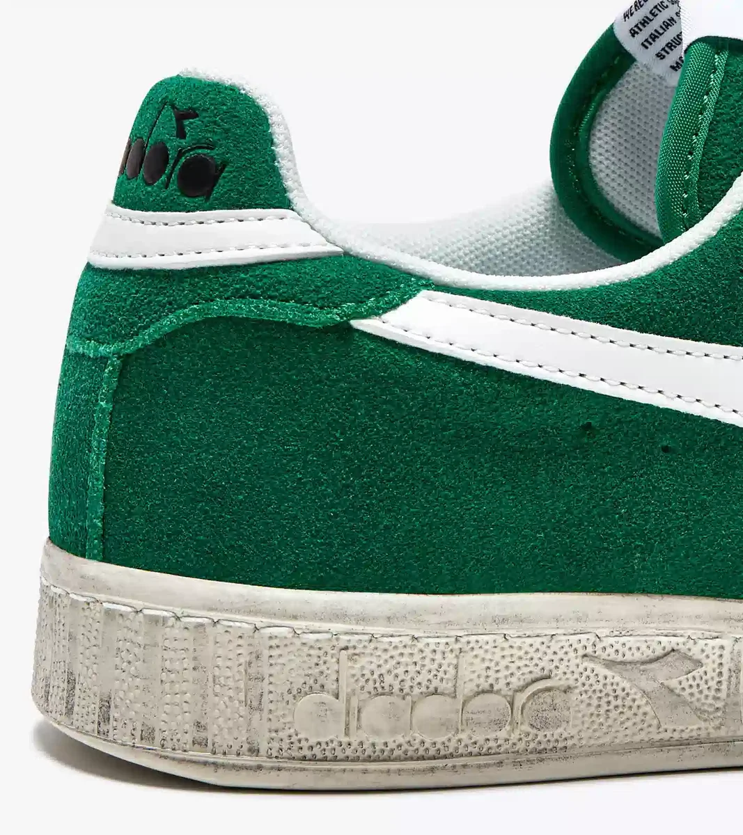 Modelul Game își datorează popularitatea esteticii sale retro, inspirată de pantofii clasici de tenis Diadora. Confecționați din piele albă, finisajul final cu ceară creează un efect distinctiv de uzură care sporește atractivitatea pielii. Detaliile sunt realizate din piele întoarsă, conferind dinamism pantofilor și confirmând stilul lor iconic.
