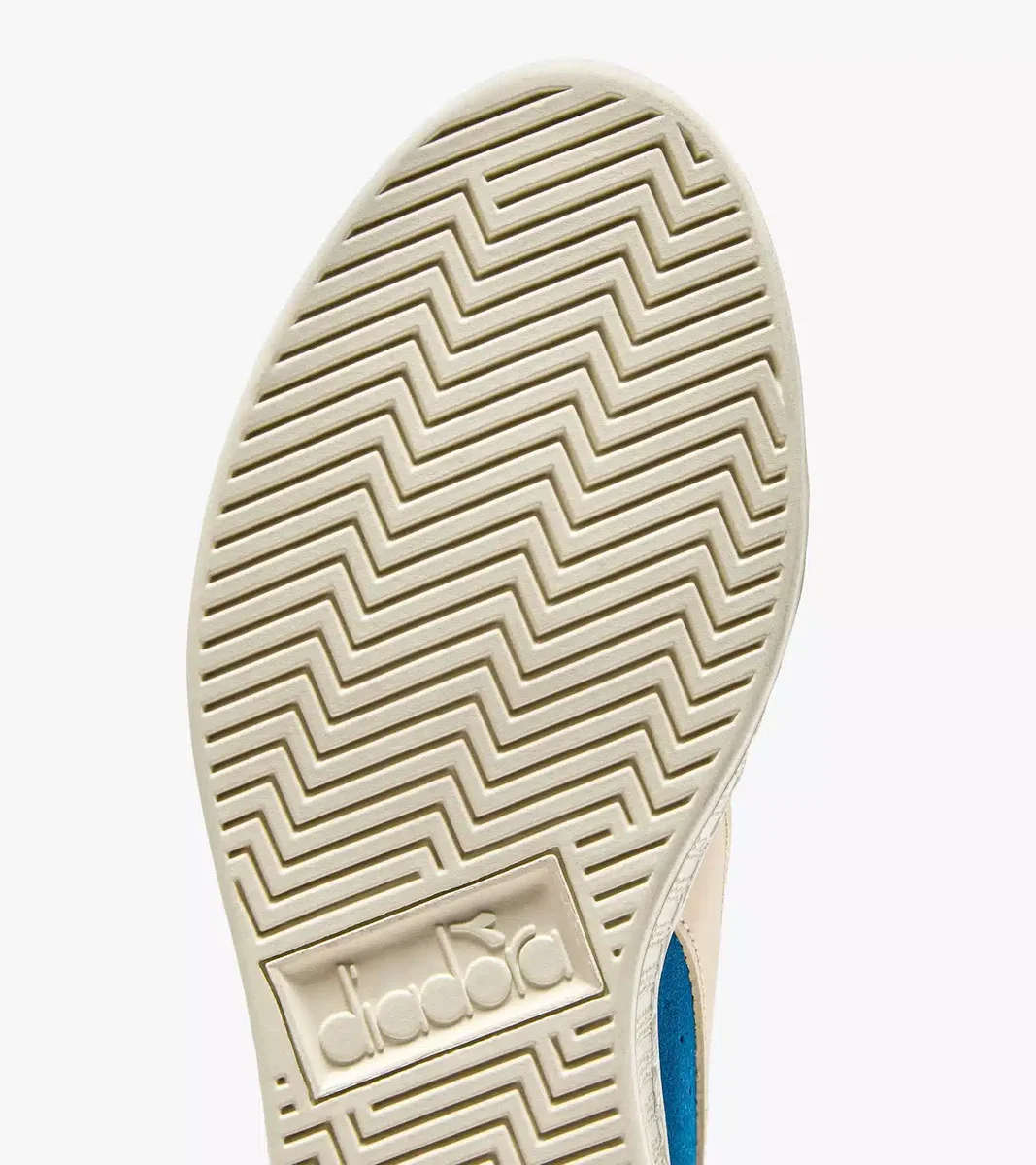 Modelul Game își datorează popularitatea esteticii sale retro, inspirată de pantofii clasici de tenis Diadora. Confecționați din piele albă, finisajul final cu ceară creează un efect distinctiv de uzură care sporește atractivitatea pielii. Detaliile sunt realizate din piele întoarsă, conferind dinamism pantofilor și confirmând stilul lor iconic.