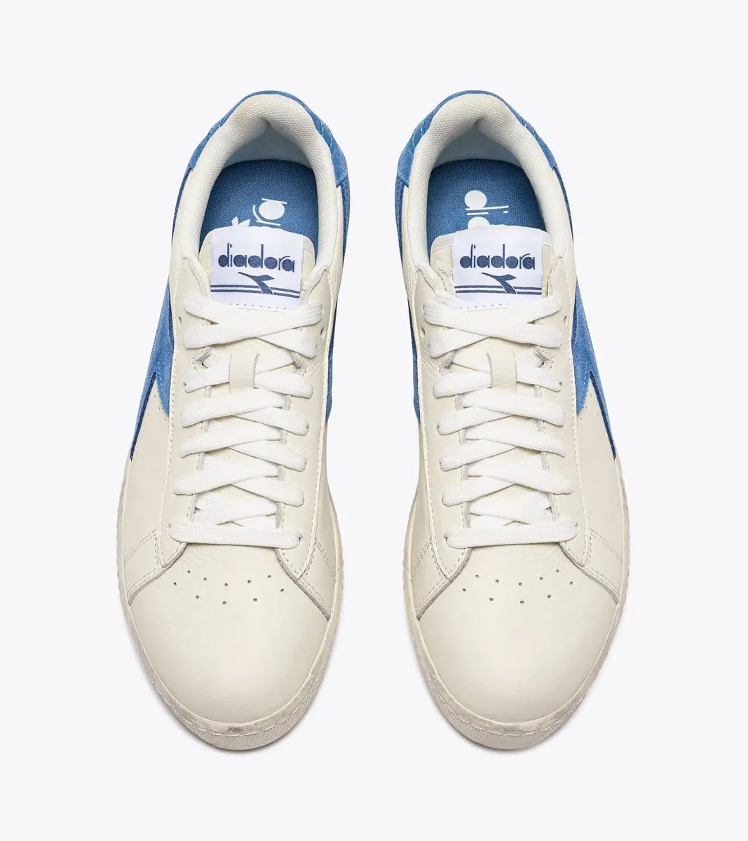 Modelul Game își datorează popularitatea esteticii sale retro, inspirată de pantofii clasici de tenis Diadora. Confecționați din piele albă, finisajul final cu ceară creează un efect distinctiv de uzură care sporește atractivitatea pielii. Detaliile sunt realizate din piele întoarsă, adăugând dinamism pantofilor și confirmând stilul lor iconic. Iar dacă preferi pantofii sport cu talpă joasă, descoperă modelul Game în varianta cu talpă înaltă!