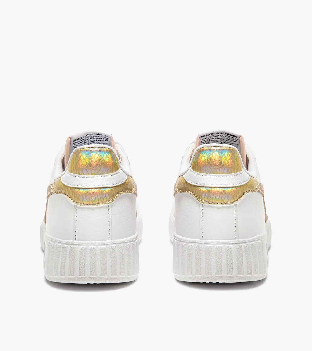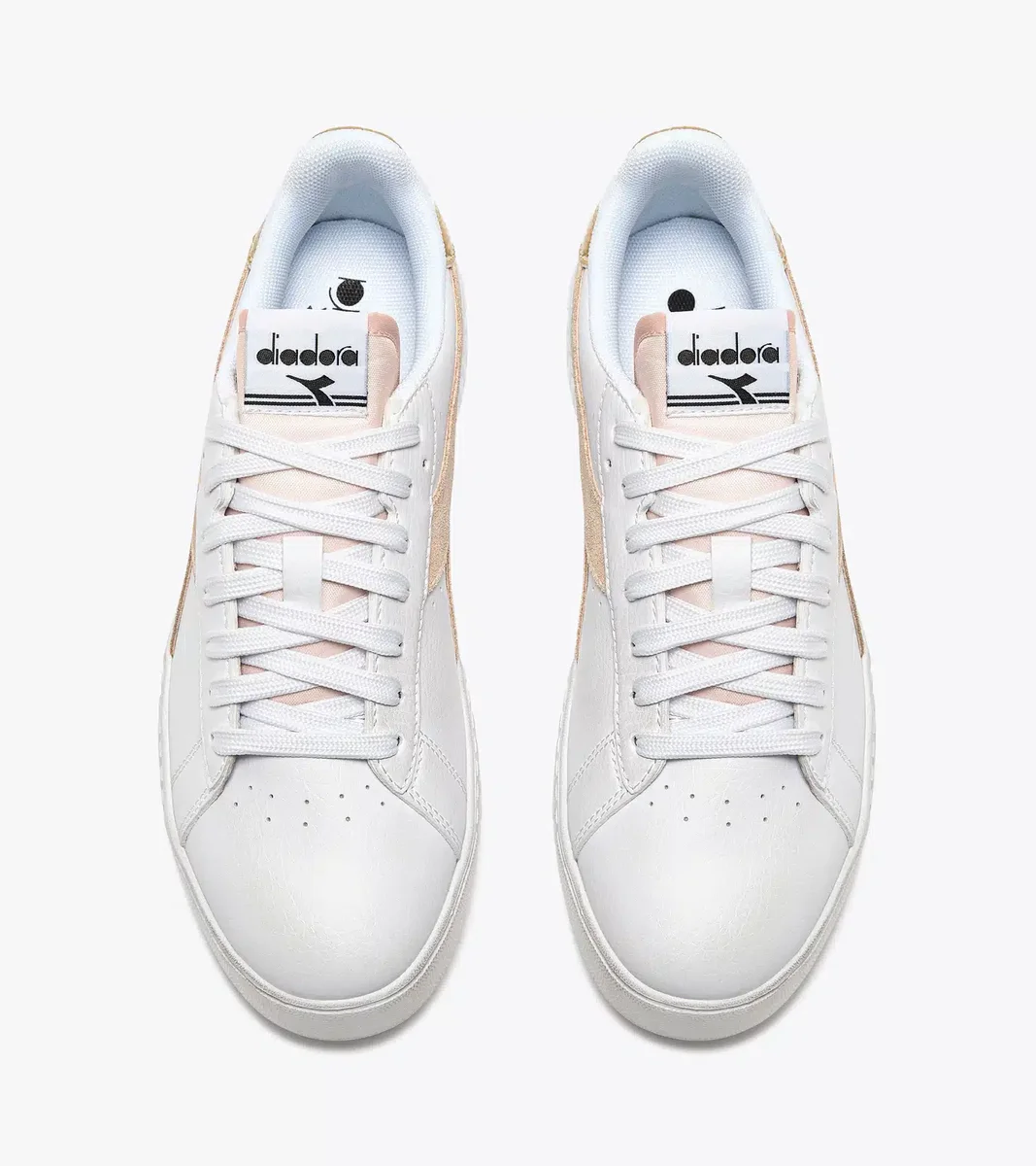 Game Step este adidașul pentru femei care îți îmbunătățește stilul de zi cu zi, de la ocazii sportive la întâlniri de afaceri. Albul total este întrerupt doar de logo-uri, spate și limbă contrastante. Confortabil, clasic, mereu la modă: te vei îndrăgosti de versatilitatea sa.