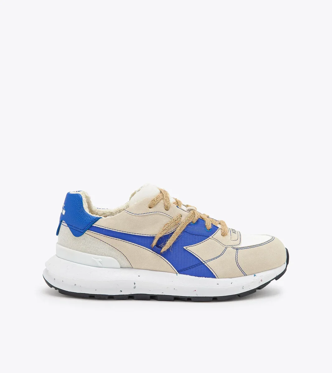 Colaborarea ACBC x diadora prezintă un redesign al modelului retro-running Kmaro, realizat cu materiale ecologice certificate. Partea superioară este realizată din FreeBioTM, o piele alternativă ACBC; căptușeala este din bumbac organic; talpa este parțial realizată din ReRubber, iar șireturile sunt din fibre de iută.