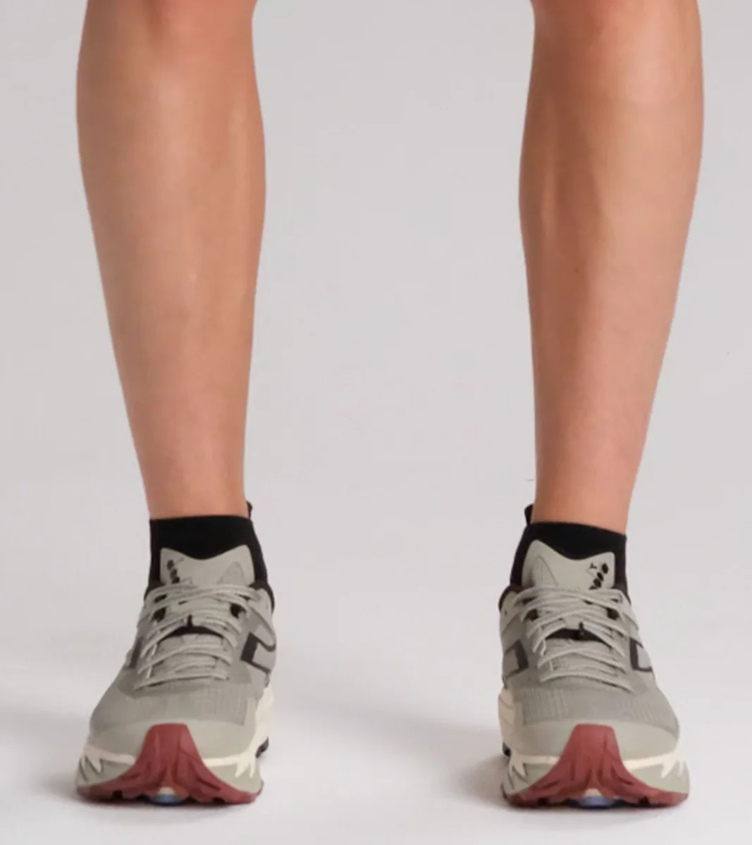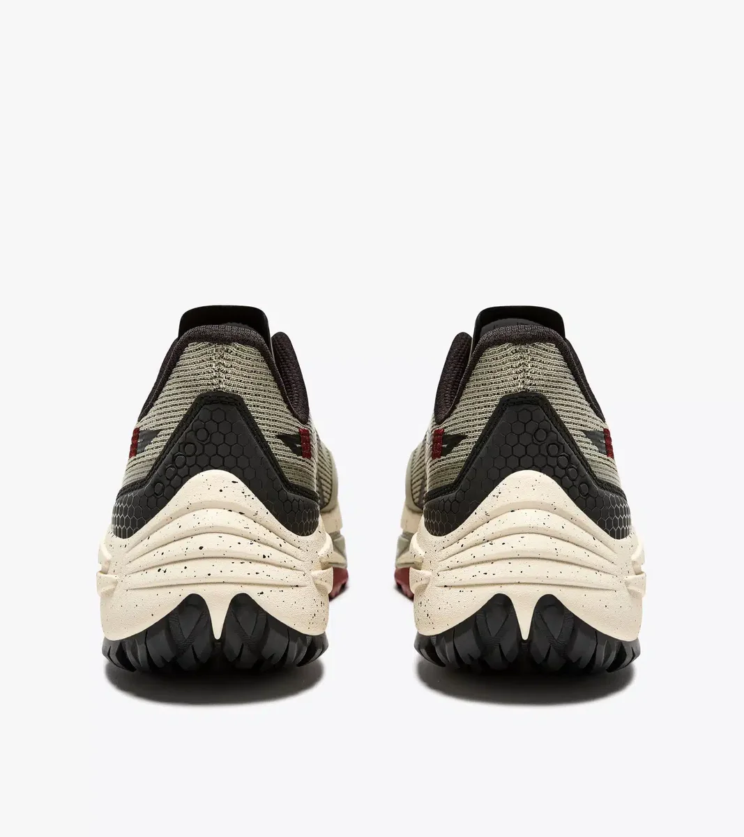 Designul tălpii reproduce anatomia copitei caprei negre în formă de V. Cauciucul dur de pe lateral asigură stabilitate și aderență. Cauciuc moale, cu aderență ridicată, în centru.