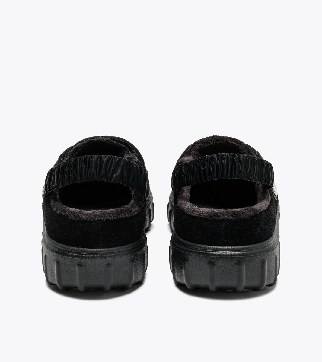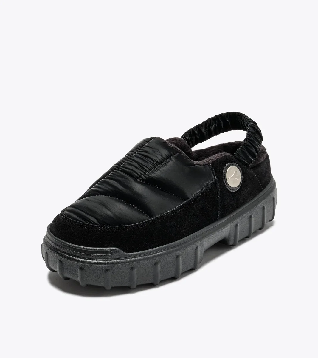 Pentru cursele montane de iarnă, am creat o pereche de saboți confortabili, funcționali și versatili. Confecționați din piele, acești saboți sunt practici de purtat și se adaptează la diverse situații, adăugând un aspect sofisticat ținutei tale après-ski. Disponibili exclusiv în magazinul nostru online și în magazinul nostru din Cortina.
